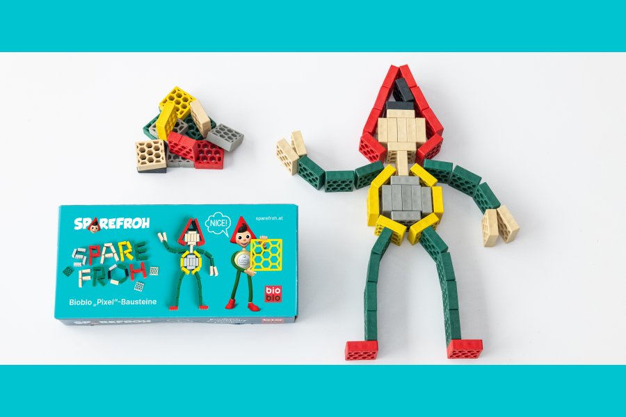 Diese drei Jubiläen – 100 Jahre Weltspartag, 70 Jahre Sparefroh, 10 Jahre Bioblo – nehmen die Erste Bank und Sparkasse zum Anlass für ein ganz besonderes, exklusives Weltspartagsgeschenk: Am 31. Oktober erhalten alle Kund:innen ein eigens kreiertes Sparefroh-Set, das sich aus 51 Bioblo-PIXEL-Bausteinen zusammensetzt.