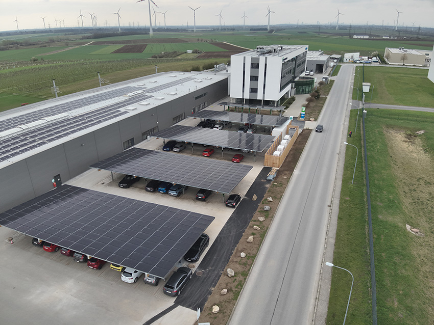 Seit April 2025 ist der innovative Ladepark in Betrieb. Errichtet hat ihn die electrify GmbH, ein Schwesterunternehmen der SPL TELE Group, bei ihrem Headquarter in Wolkersdorf. Dafür hat electrify auf das eigene Portfolio und Wissen in Sachen Errichtung von Photovoltaikanlagen, E-Ladeinfrastrukturen sowie Energiespeicherung zurückgegriffen und sozusagen eine Musteranlage errichtet. Das Ergebnis: 176 überdachte Stellplätze, ausgestattet mit dem eigens entwickelten Carport namens „THOR“ und 1.365 PV-Paneelen mit einer Gesamtleistung von 561 kWp.