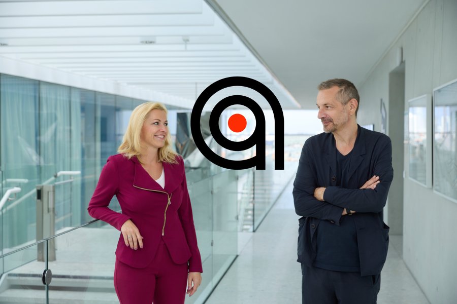 Sabine Auer-Germann, Geschäftsführerin von adverserve, und Rudolf Zündel, Gründer und Geschäftsführer von Zündel Branding, mit dem redesignten adverserve-Logo © Thomas Unterberger