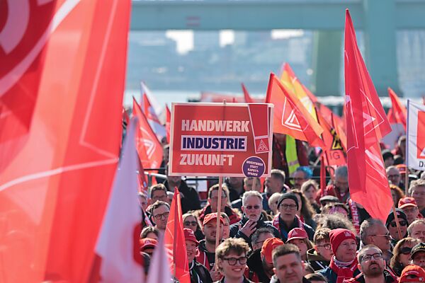 Gegen den Abbau von Arbeitsplätzen in der Industrie sind laut Gewerkschaften am Samstag in Deutschland fast 80.000 Menschen auf die Straßen gegangen. In fünf Städten seien insgesamt 77.000 Beschäftigte dem Aufruf gefolgt, so die IG Metall und die Industriegewerkschaft IGBCE. Allein in Köln hätten 23.000 Menschen für ein modernes Industrieland, einen starken Sozialstaat und sichere Arbeitsplätze demonstriert. Weitere Demos gab es in Hannover, Frankfurt, Leipzig und Stuttgart.