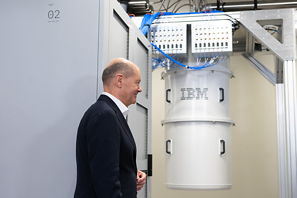 Der deutsche Kanzler Olaf Scholz (SPD) hat das erste Rechenzentrum mit Quantencomputern des US-Konzerns IBM auf europäischem Boden eröffnet. Er sprach von einem großen Fortschritt und hob die Bedeutung der Technologie hervor. "Quantencomputer, Halbleiter, KI, Pharma, Bio- und Klimatechnologie - die Auswahl ist kein Zufall. Wir reden da über Schlüsselindustrien und Branchen, die ein Industrieland wie Deutschland braucht, um auch in Zukunft gutes Geld zu verdienen", so Scholz.