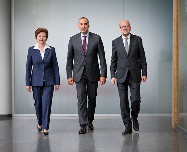 Der Frequentis-Vorstand (v. l. n. r.): CFO Sylvia Bardach, CEO Norbert Haslacher, CTO Hermann Mattanovich © Frequentis AG