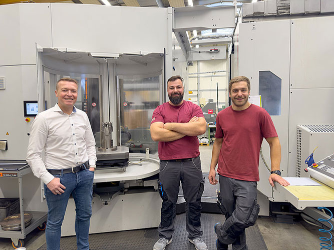 Ständig in engem Kontakt (v. l. n. r.): Erhard Strobel, Vertriebstechniker bei Blum-Novotest, Norbert Leins, CAD/CAM-Programmierung & Arbeitsvorbereitung, sowie Florian Bott, Teamleiter der Fräserei bei Bott © Blum-Novotest