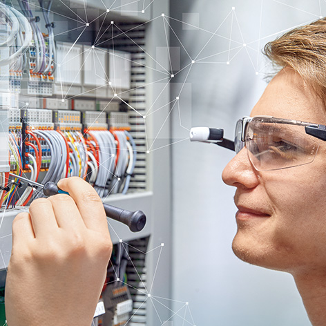 4. Der Schaltschrankbau ist in zehn Jahren automatisierter und digitaler als heute. Anlagen für das automatische Konfektionieren und Montieren von Tragschienen und das automatisierte Verdrahten von Reihenklemmen mit Push-in-Anschlusstechnik unterstützen ebenso industrielle Fertigungsprozesse. Neue Technologien wie Virtual und Augmented Reality werden wichtige Bausteine für den Schaltschrankbau der Zukunft sein. Und im Schaltschrank selbst werden Sie viele Komponenten von Phoenix Contact finden.