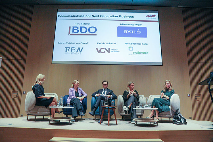 Wie die Unternehmensübergabe gelingen kann, diskutierten auf Einladung der Handelskammer Schweiz-Österreich-Liechtenstein (HKSÖL) in der „Top Speakers Lounge“ bei BDO Austria Marie-Christine von Pezold (FBN Switzerland), Florian Meindl (BDO Austria), Sabine Hönigsberger (Erste Bank) und Ulrike Rabmer-Koller (Rabmer-Gruppe).