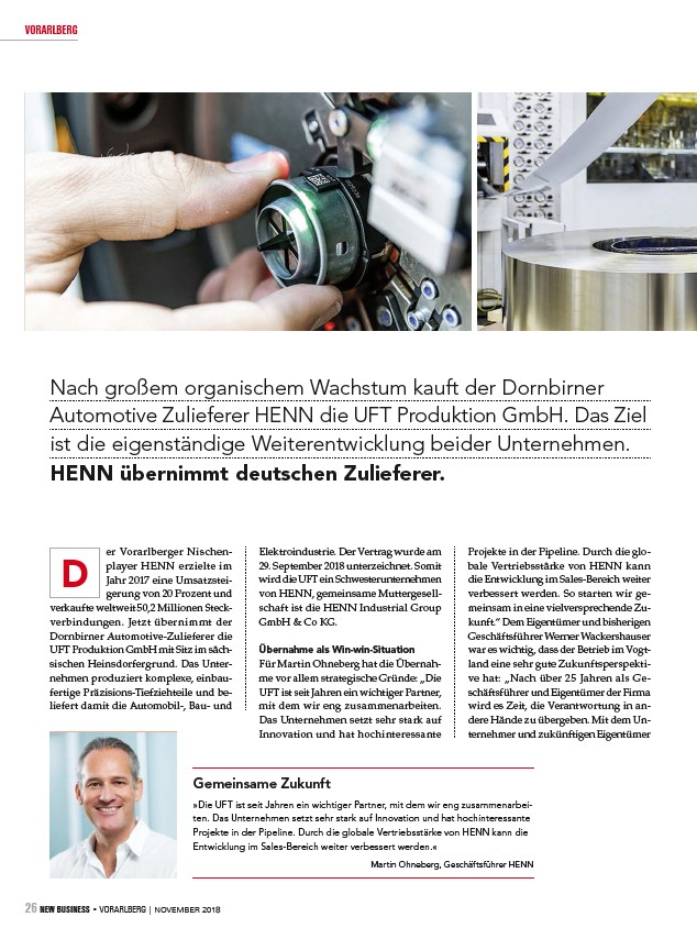 Automotive Zulieferer HENN die UFT Produktion GmbH. Das Ziel