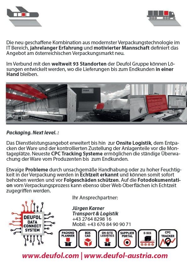 der Ware und der kontrollierten Zustellung der Anlagenteile vor die Montageplätze.