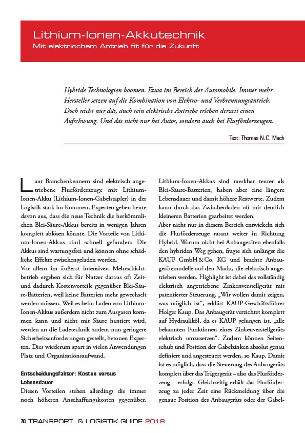 70 TRANSPORT- & LOGISTIK-GUIDE 2018