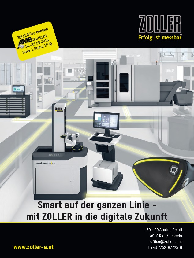 www.zoller-a.at ZOLLER Austria GmbH 4910 Ried/Innkreis office@zoller-a.at T +43 7752 87725-0 ZOLLER live erleben Stuttgart 18.-22.09.2018 Halle 1 Stand 1F70 Smart auf der ganzen Linie - mit ZOLLER in die digitale Zukunft