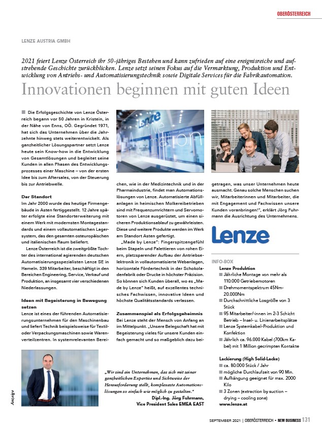2021 feiert Lenze Österreich ihr 50-jähriges Bestehen und kann zufrieden auf eine ereignisreiche und aufstrebende