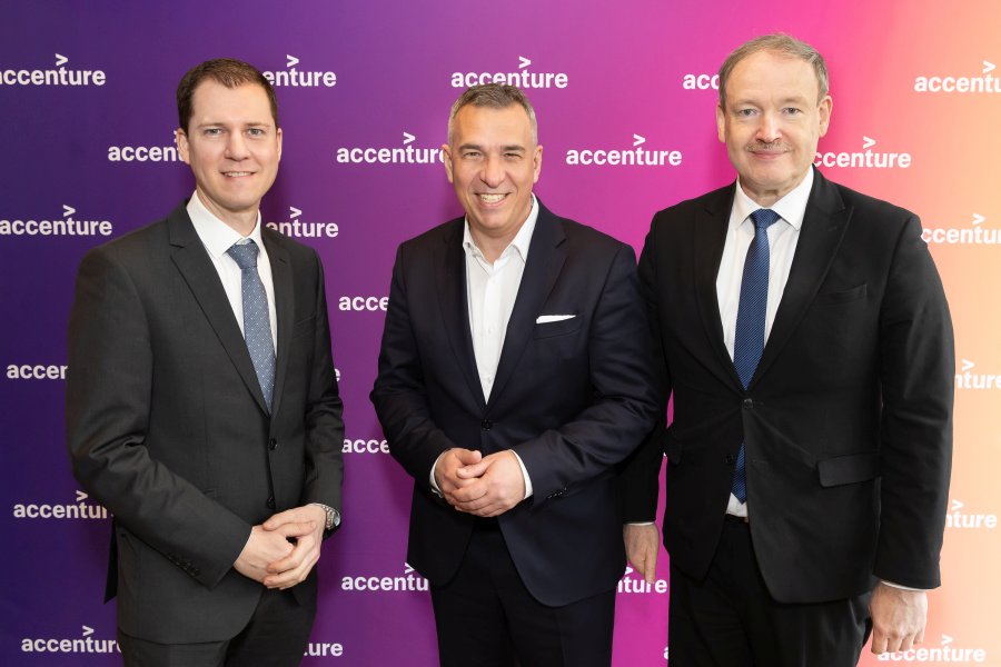 v.l.n.r.: Philipp Krabb, Leiter Research bei Accenture Österreich, Michael Zettel, Country Managing Director Accenture Österreich, Christian Helmenstein, Chefökonom der Industriellenvereinigung, Leiter des Instituts für Wirtschaftsforschung Economica und Professor an der Seeburg Castle University © Christian Mikes