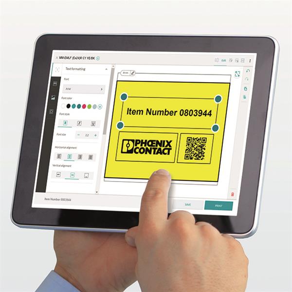 Für einen vollständig mobilen Markierungsprozess ist neben den mobilen Drucksystemen auch eine Software für mobile Betriebssysteme erforderlich, die den Anwender bei umfangreichen Projekten unterstützt. Phoenix Contact bietet hier eine mobile Systemlösung mit Drucker, Software und Markierungsmaterialien. Der neue mobile Thermotransferdrucker „Thermomark GO“ bietet in Kombination mit der App „Marking system“ eine praktikable Lösung, die dank intuitiver Bedienung per Smart Device die Digitalisierung der industriellen Kennzeichnung auf eine neue Stufe stellt. Der Anwender kann von seinem Smartphone aus – das er ohnehin meistens bei sich führt – sämtliche Interaktionen mit dem Drucker intuitiv durchführen.
