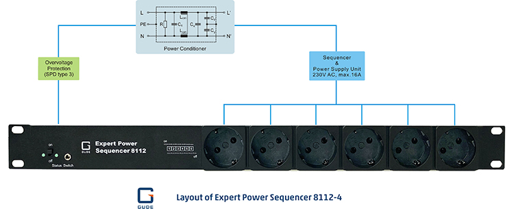 Mit der Expert Power Sequencer 8112 Serie können Geräte automatisch zeitversetzt ein- oder ausgeschaltet und somit Einschaltspitzen vermieden werden. © Gude Systems GmbH