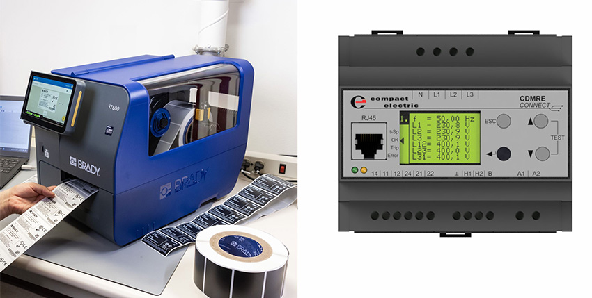 Mit dem Industrie-Drucker i7500 (links) und dem Netzüberwachungs-Relais CDMRE-Connect (rechts) liefert compact electric einen ersten Vorgeschmack auf das Messeprogramm bei der SMART Automation im Design Center Linz, Halle DC, Stand 126. © compact electric