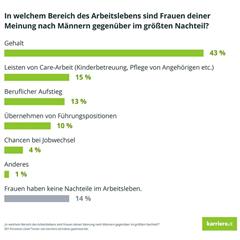 Von 501 Personen gaben bei der Umfrage von karriere.at 43 Prozent an, dass erwerbstätige Frauen ihrer Meinung nach bei der Bezahlung den größten Nachteil haben.