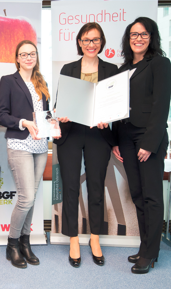Der D.A.S. Rechtsschutzversicherung wurde zum dritten Mal in Folge das Gütesiegel für Betriebliche Gesundheitsförderung (BGF-Gütesiegel) durch die Wiener Gebietskrankenkassa verliehen.