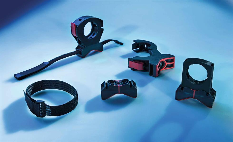 Das Murrplastik Haltesystem FHS besteht aus zwei verschiedenen Grundkörpern plus einem Klettband in unterschiedlichen Längen und lässt sich für drei verschiedene Befestigungsarten FHS-SH, FHS-UHE und FHS-C einsetzen.