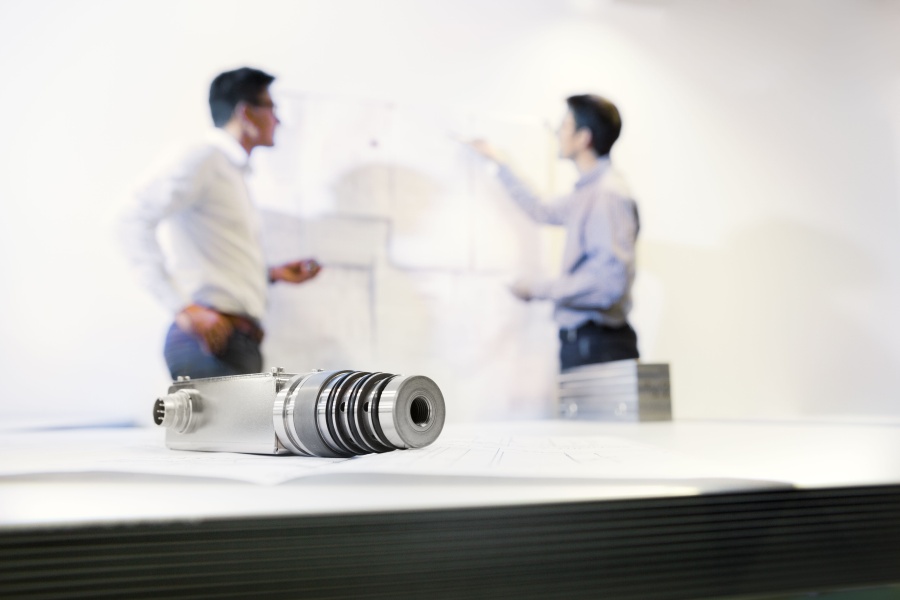 „In einem ersten Schritt hat unser Team das gesamte System bei Miba bis ins kleinste Detail analysiert“, rekapituliert LCM-Projektleiter Andreas Plöckinger. „Dabei stellte sich heraus, dass die standardmäßig verbauten Schieberventile eine hohe interne Leckage hatten und es auch in der Steuerungstechnik Optimierungspotenzial gab.“ Auf Basis dieser Analyse wurde klar, dass Miba eine maßgeschneiderte Lösung brauchte, die sich problemlos in das bestehende Hydrauliksystem der Pressen integrieren lassen musste. Dafür entwickelte das LCM-Team eine völlig neuartige digitalhydraulische Druckhalteeinheit samt zugehöriger Hardware, Steuerungstechnik und Software. Nach einer intensiven Testphase wurden die Heizpressen damit aufgerüstet. „Nun ist es möglich, ohne Nachfüllung drei volle Zyklen aus dem Druckspeicher zu fahren, der in wenigen Sekunden vom Standardaggregat mit Öl befüllt wird. Während dieser Zeit kann der Motor komplett abgeschaltet werden“, freut sich Bernd Winkler. Das sei ein Quantensprung in Bezug auf Lärmpegel und Energieverbrauch, argumentiert der Business Area Manager Drives bei LCM.