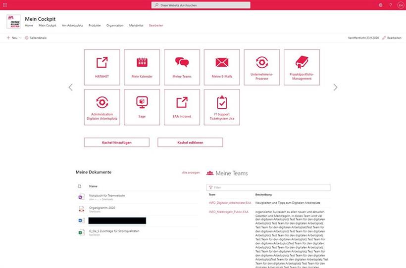Herausforderung: Nach der Umstellung auf Microsoft 365 wollte EAA auch das Intranet, das zu diesem Zeitpunkt auf SharePoint 2013 basierte, in die MS Cloud migrieren. Gleichzeitig sollte das Intranet zu einem digitalen Arbeitsplatz erweitert und so umstrukturiert werden, dass ein Mehrwert für die MitarbeiterInnen entsteht.