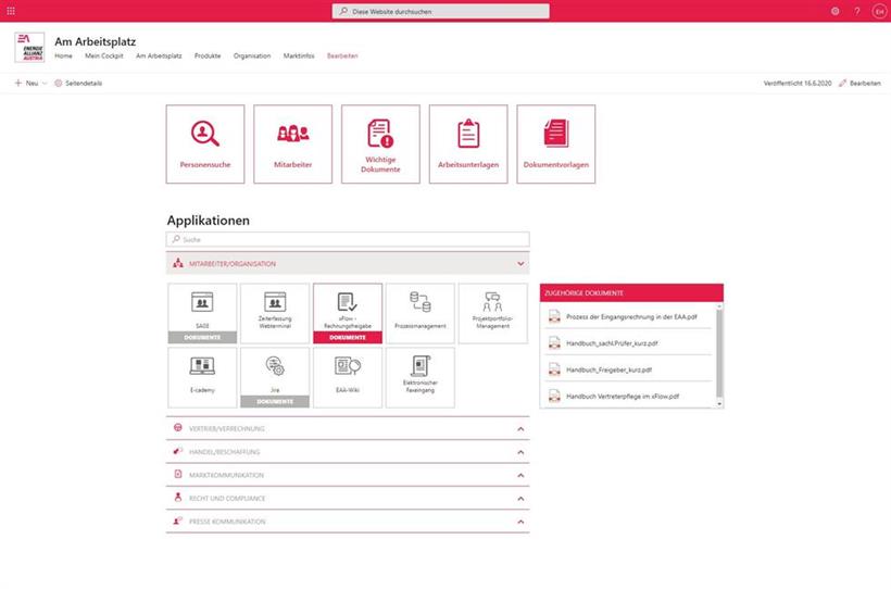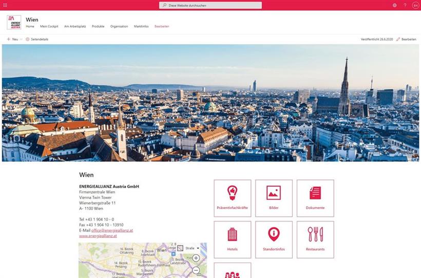 Der neue digitale Arbeitsplatz vernetzt die EAA-MitarbeiterInnen nun deutlich besser. So gibt es etwa einen Firmenkalender auf der Intranet-Startseite, der alle relevanten internen Termine anzeigt. Und die einzelnen Abteilungen haben die Option, sich und ihre Tätigkeiten im Unternehmensnetz zu präsentieren. Das gilt natürlich nicht nur für die MitarbeiterInnen in der Zentrale im Wiener TwinTower, sondern auch für diejenigen, die in den Vertriebsniederlassungen arbeiten, etwa in Linz und Essen.