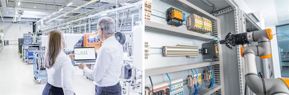 li.: Digitale Prozessanalyse direkt in der Fertigung, re.: Automatisierung im Schaltschrankbau © Weidmüller GmbH