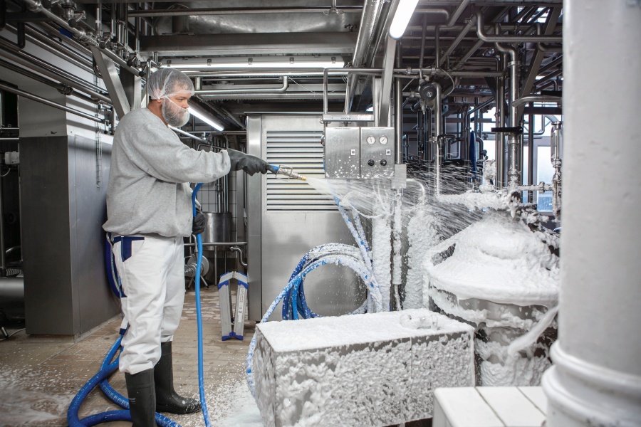 Manuelle Niederdruck-Reinigung in einem milchverarbeitenden Betrieb © System Cleaners